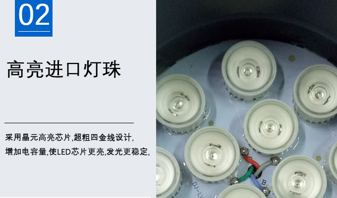 2、采用晶元高亮芯片,粗四金線設(shè)計(jì),增加電容量,使LED芯片更亮,發(fā)光更穩(wěn)定